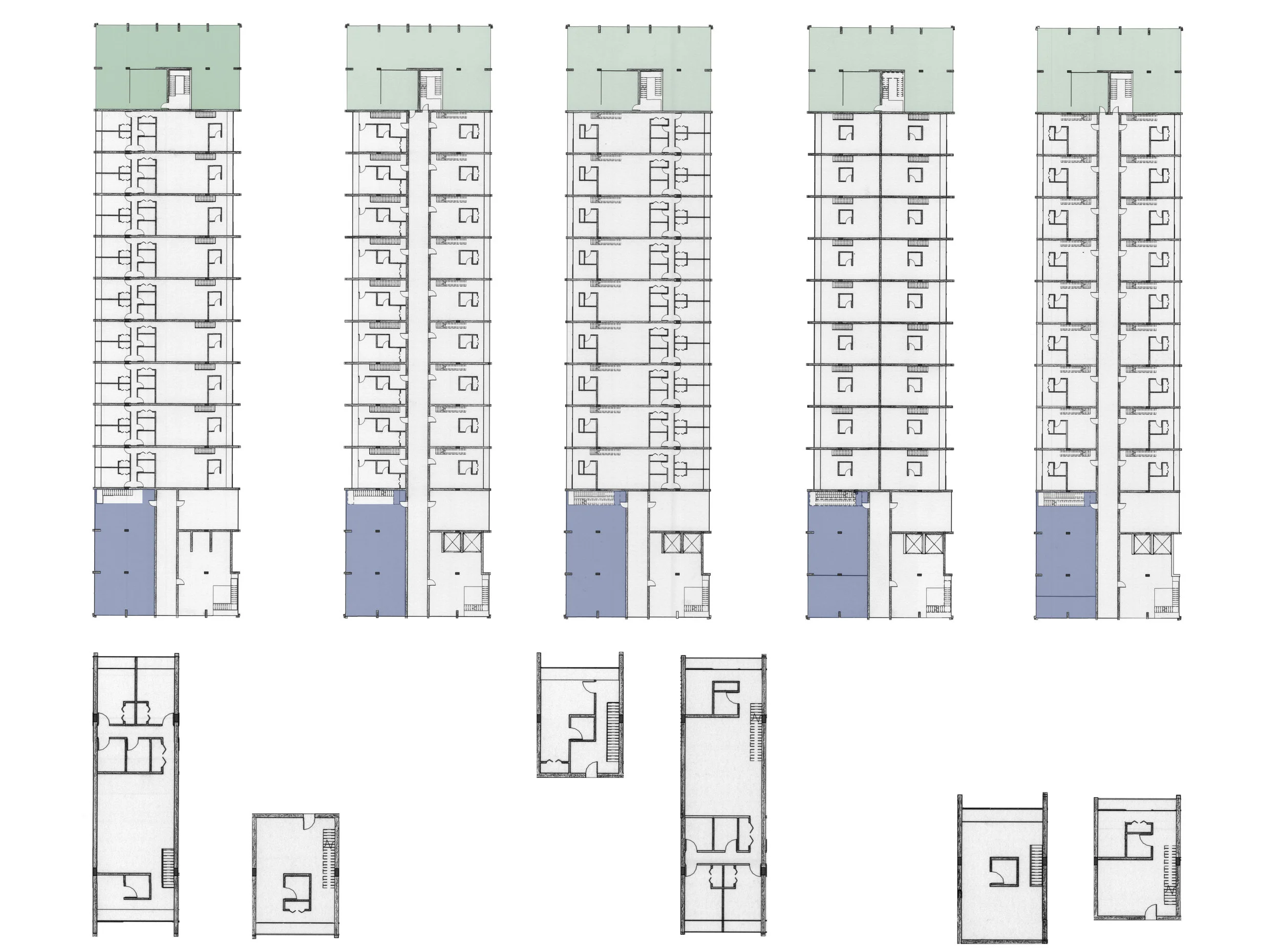LEFT TO RIGHT (LEVEL 01 BOAT STORAGE, LEVEL 02 VIEWING RAMP, LEVEL 03 TYPICAL DWELLING UNIT)