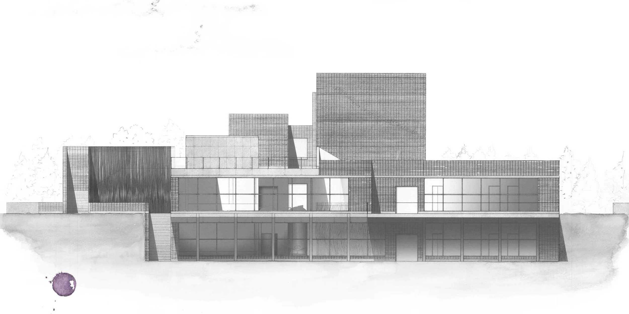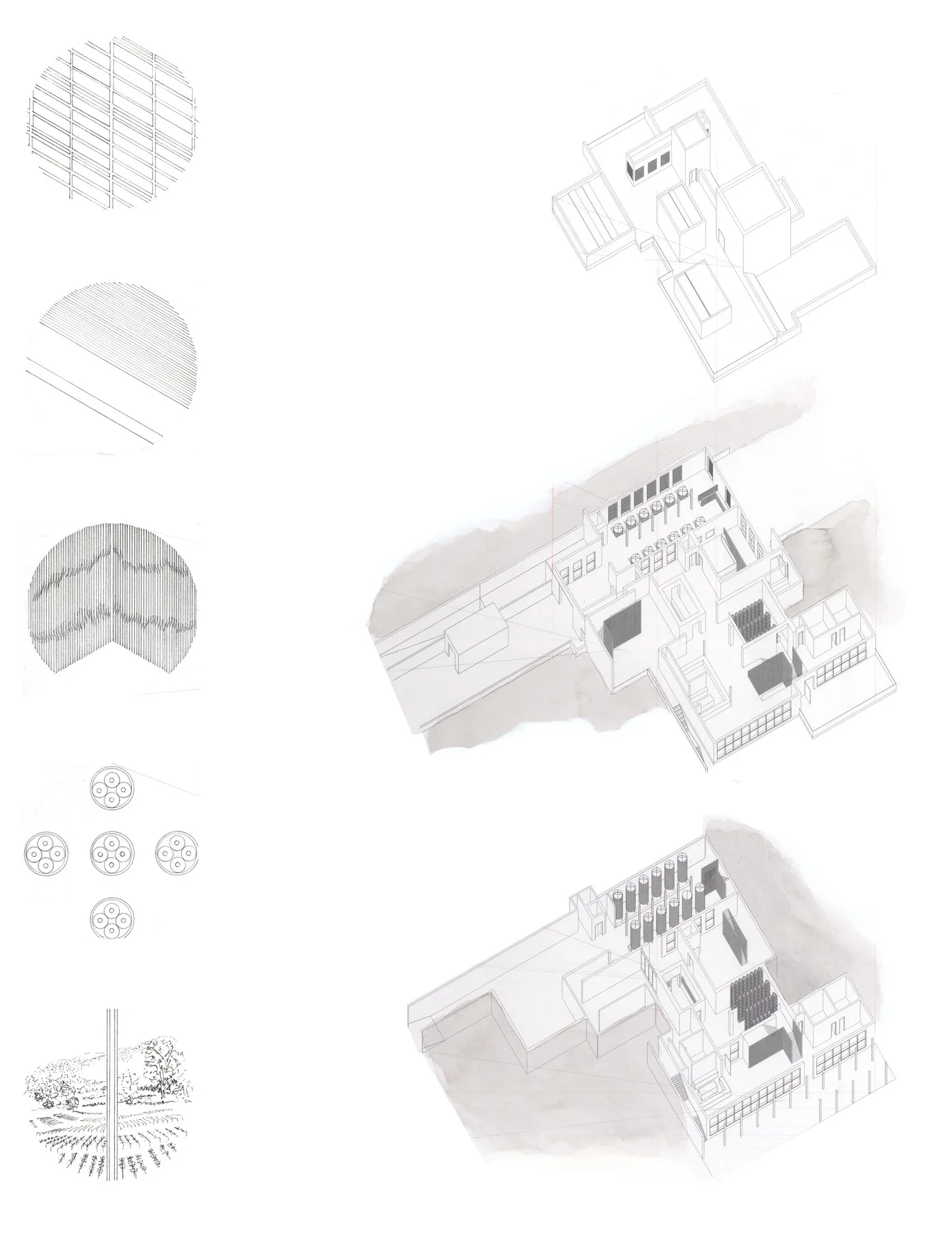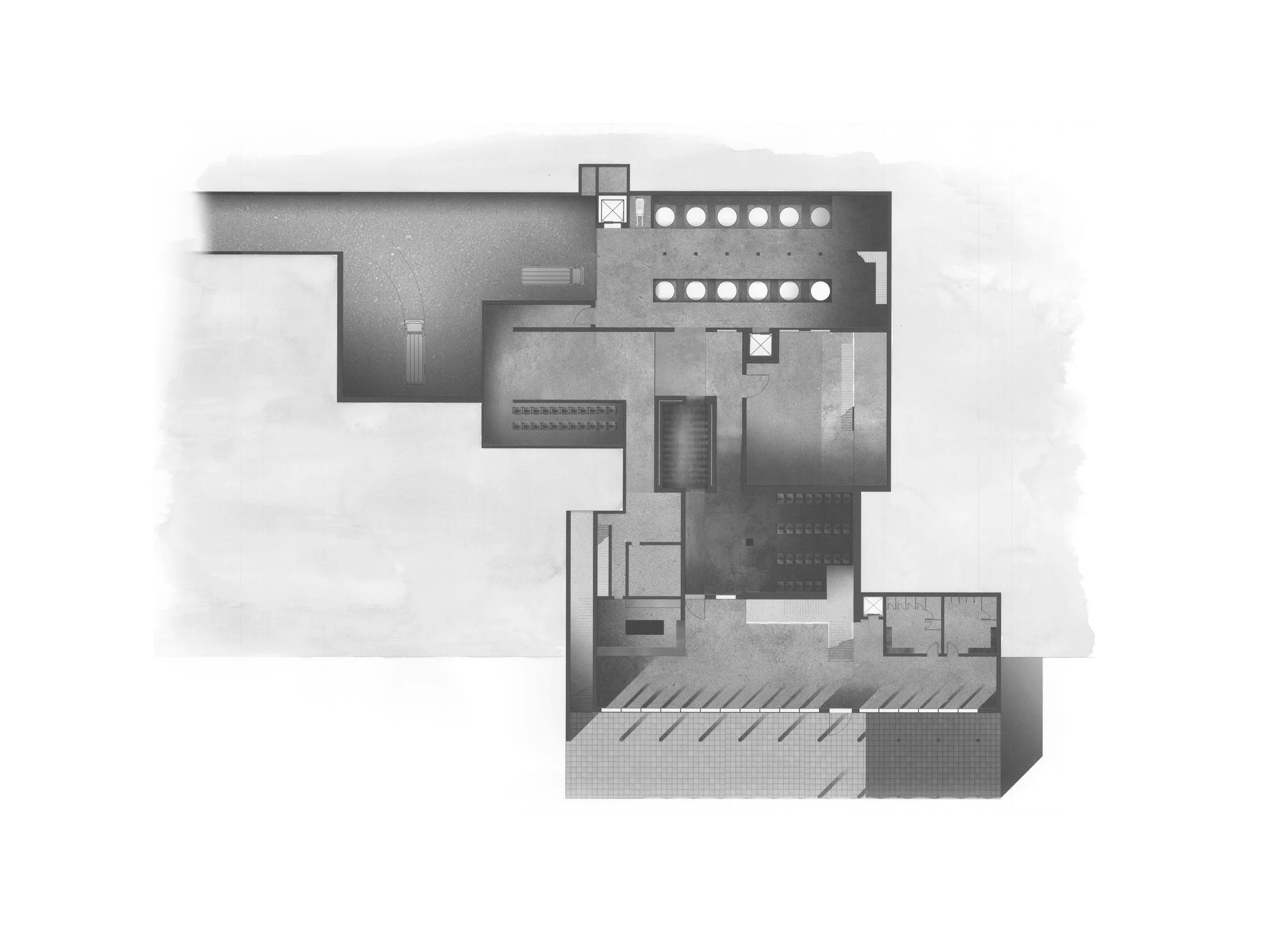 Encounter: As inhabitants of the architecture find themselves responding to the five processes at hand, a unique quality of light and space is presented. Material shifts further express the formal qualities of the architecture by giving each process a different quality of light. A response back to the site, the originator of the process and the form, is encountered in a threefold manor: underground, on the ground plane, and above the ground plane.